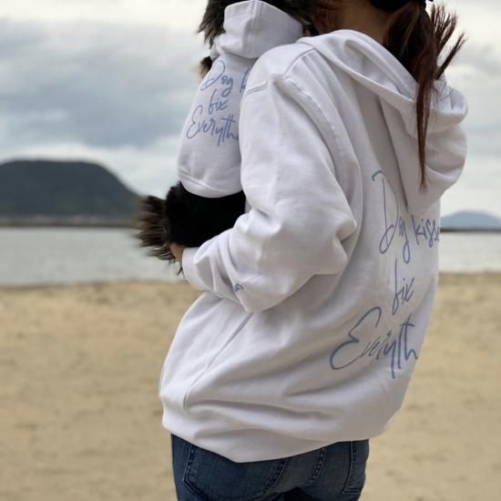 お散歩やレジャー、写真撮影など、様々なシーンで活躍する『Dog kisses fix Everything!』犬用パーカー。可愛さと実用性を兼ね備えたアイテムですので、愛犬と一緒に特別な時間を過ごしたい方にぴったりです。お揃いのパーカーで、新しい思い出を作りませんか?