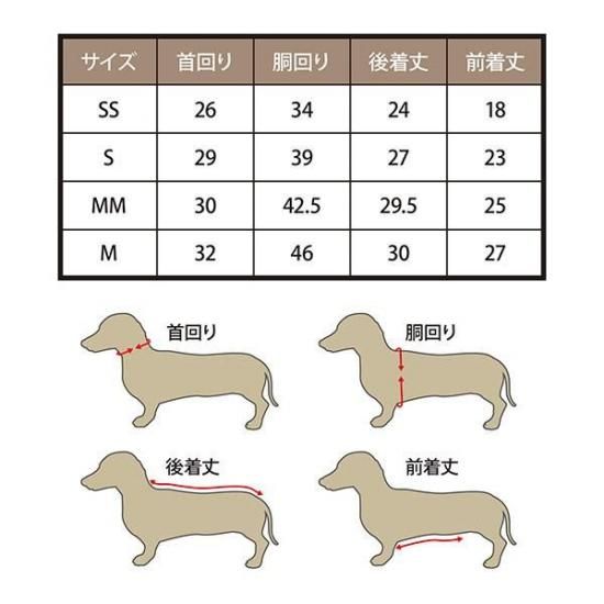 首回り/26 胴回り/34 後着丈/24 前着丈/18