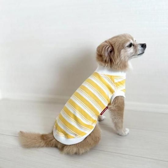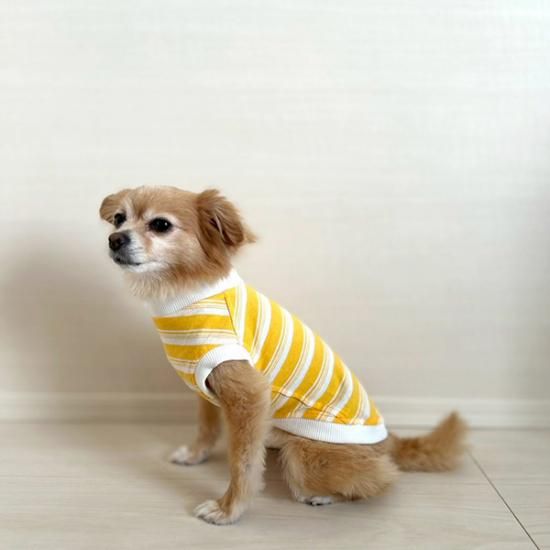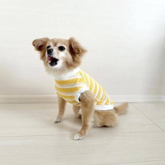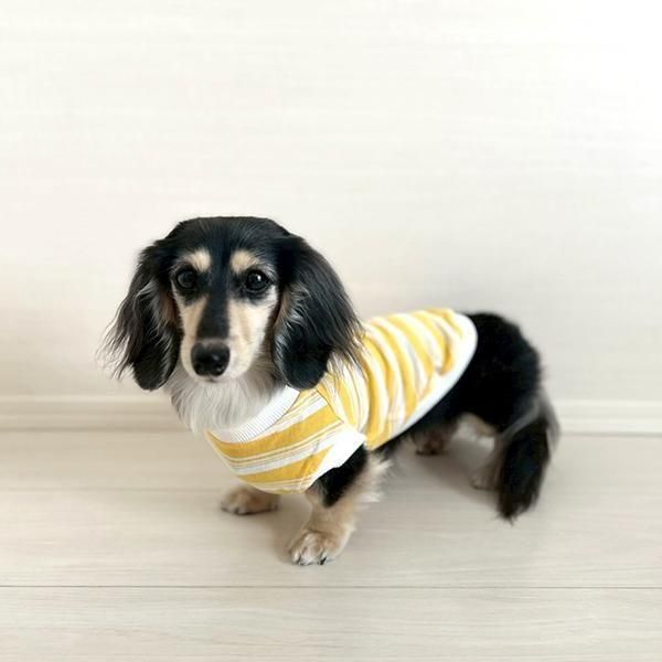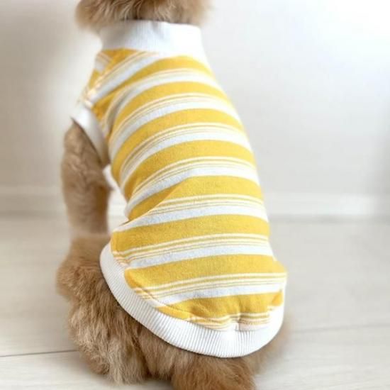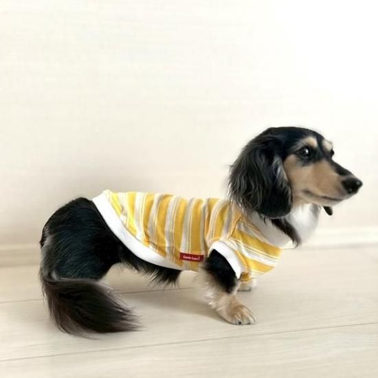 アメリカンボーダーデザインが愛らしい犬用イエロー×ホワイトの犬服は、愛犬家の皆様へのプレゼントとしても最適です。愛犬とのステキなお揃いコーディネートを楽しんでください。