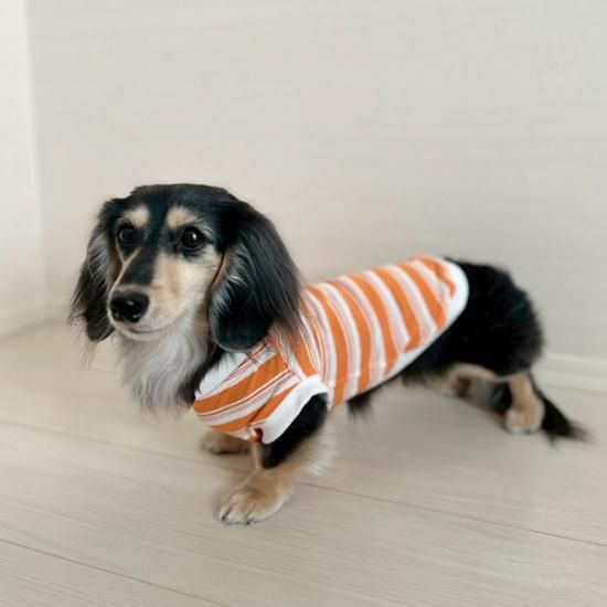 アメリカンボーダーデザインが愛らしいオレンジ×ホワイトの犬服は、愛犬家の皆様へのプレゼントとしても最適です。愛犬とのステキなお揃いコーディネートを楽しんでください。