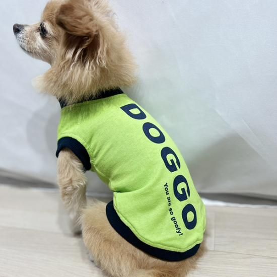DOGGO/犬用Tシャツ(ライトグリーン)/愛犬とお揃い可犬用Tシャツの中でも、この「DOGGO/犬用Tシャツ(ライムグリーン)」は一味違います。ノースリーブデザインで、夏の暑い日にも涼しく快適に着用できるのがポイントです。ライムグリーンの鮮やかな色合いは愛犬の毛色を引き立て、さらに愛らしさを引き出してくれます。